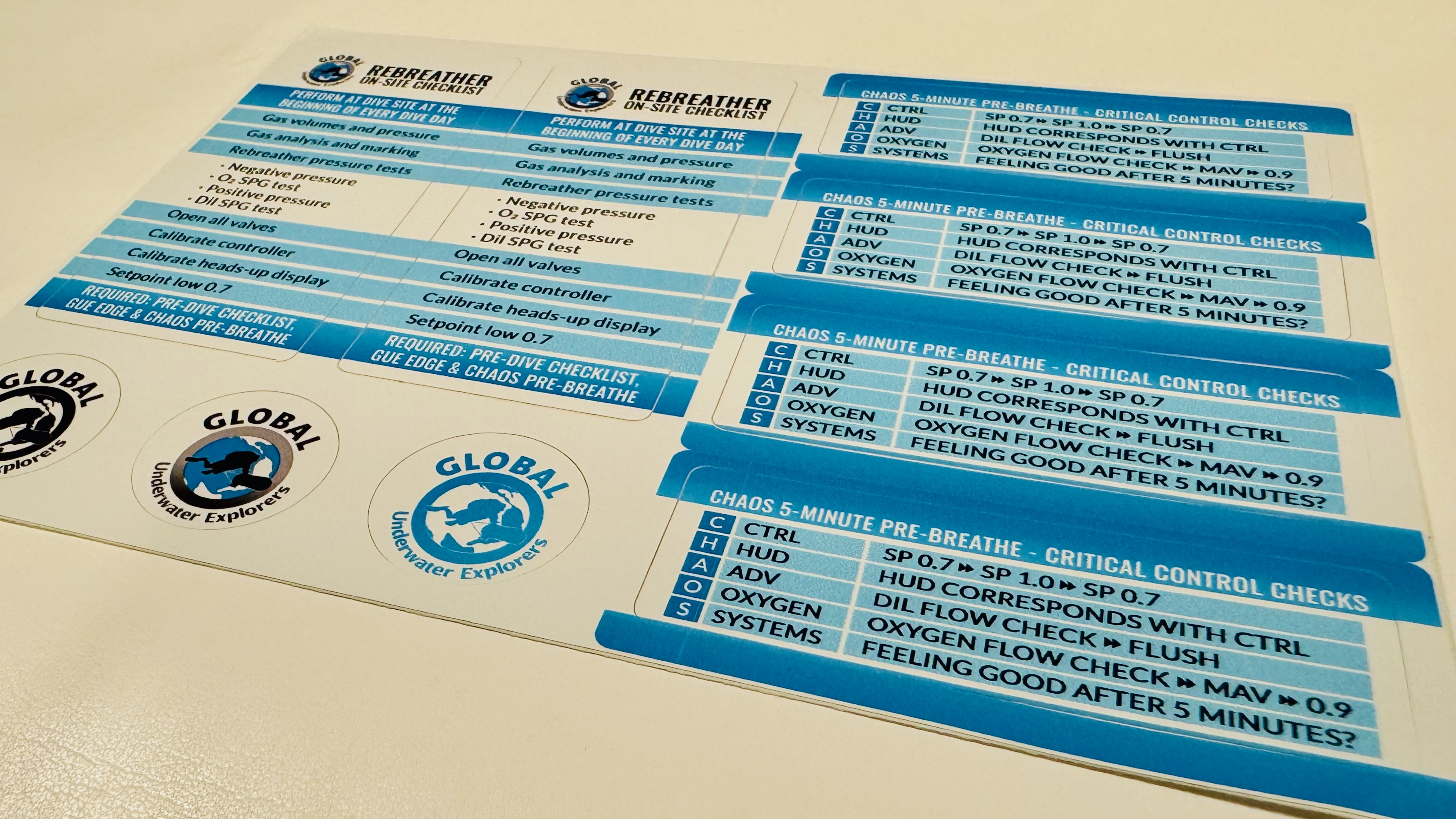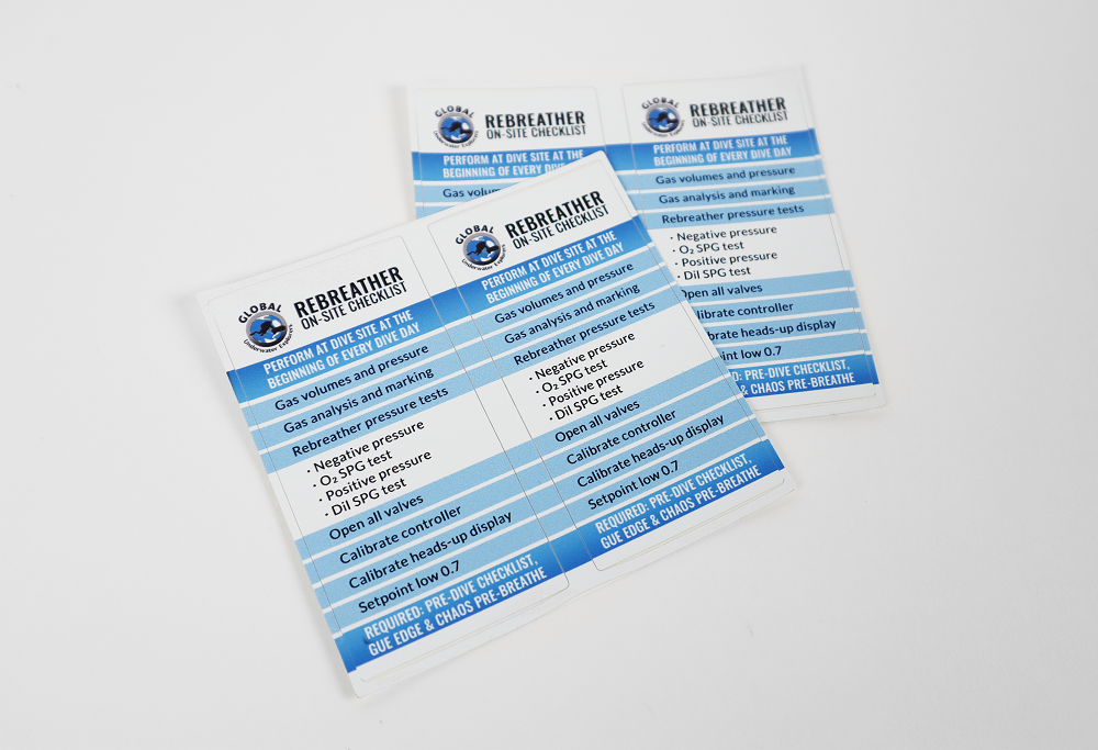 Be prepared for your next CCR dive with GUE's new CCR checklist tape! Made from the same flatback tape stock as our analysis tape, these rolls include approximately 200 checklists Measuring 7,6 cm x 17,75 cm each.
